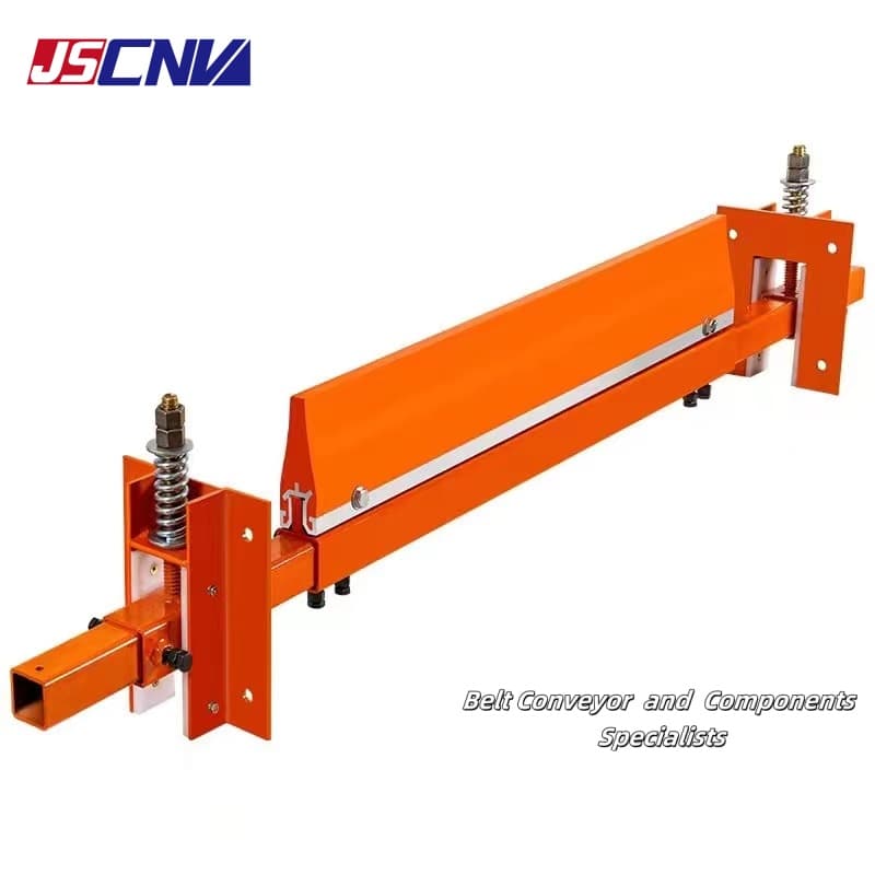 ባለ አንድ መስመር ማጽጃ ለመመለሻ ቀበቶ ማጽጃ ነው. እሱ በዋነኝነት የሚያገለግለው ከኋላ የታጠፈ መዘዉር ፊት ለፊት እና በቀበቶ ማጓጓዣው ከባድ ቀጥ ያለ መወጠር መሳሪያ ፊት ለፊት ነው። በተለይም በሁለት መንገድ የሚሮጥ ቀበቶ ያለውን ባዶ ክፍል ለማጽዳት ሊያገለግል ይችላል. የአሲድ እና የአልካላይን መከላከያ ባህሪያት, የእሳት ነበልባል እና አንቲስታቲክ, ከፍተኛ የመልበስ መከላከያ, እና ቀበቶውን አይጎዳውም. ቢላዋ ከፍተኛ ጥንካሬ ካለው ፖሊዩረቴን የተሰራ ነው, የ V ቅርጽ ያለው ንድፍ ቀበቶ ንፅህናን ያረጋግጣል, እና አውቶማቲክ የስበት ንድፍ ቅጠሉ ሲያልቅ አውቶማቲክ ማካካሻን ያረጋግጣል.
